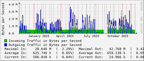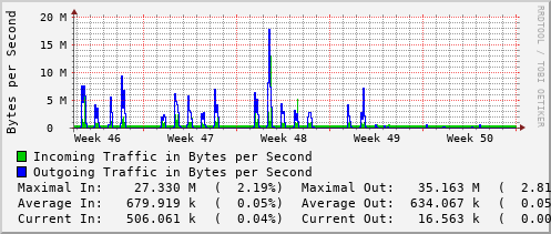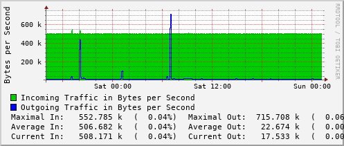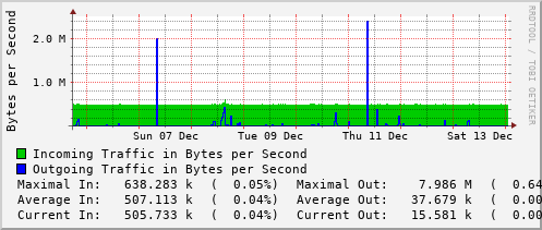 <h1>Traffic Analysis for Po22 -- dms-rt-1907.ns.uwaterloo.ca</h1> <div id="sysdetails"> <table> <tr> <td>System:</td> <td>dms-rt-1907.ns.uwaterloo.ca in DMS 1907</td> </tr> <tr> <td>Maintainer:</td> <td>noc@uwaterloo.ca </td> </tr> <tr> <td>Description:</td> <td>Port-channel22 po15-dms-sw-2907-b </td> </tr> <tr> <td>ifType:</td> <td>propVirtual (53)</td> </tr> <tr> <td>ifName:</td> <td>Po22</td> </tr> <tr> <td>Max Speed:</td> <td>1250.0 MBytes/s</td> </tr> <tr> <td>Ip:</td> <td>No Ip (No DNS name)</td> </tr> </table> </div>