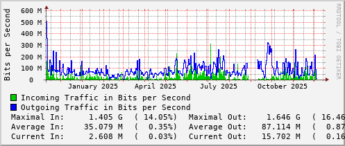 <h1>Traffic Analysis for Vl36 -- e2-rt-1782a.ns.uwaterloo.ca</h1> <div id="sysdetails"> <table> <tr> <td>System:</td> <td>e2-rt-1782a.ns.uwaterloo.ca in E2 1782a</td> </tr> <tr> <td>Maintainer:</td> <td>noc@uwaterloo.ca </td> </tr> <tr> <td>Description:</td> <td>Vlan36 e2-user-me3 </td> </tr> <tr> <td>ifType:</td> <td>propVirtual (53)</td> </tr> <tr> <td>ifName:</td> <td>Vl36</td> </tr> <tr> <td>Max Speed:</td> <td>10.0 Gbits/s</td> </tr> <tr> <td>Ip:</td> <td>129.97.36.1 (No DNS name)</td> </tr> </table> </div>