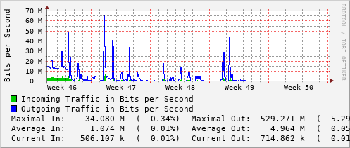 <h1>Traffic Analysis for Vl48 -- e2-rt-1782a.ns.uwaterloo.ca</h1> <div id="sysdetails"> <table> <tr> <td>System:</td> <td>e2-rt-1782a.ns.uwaterloo.ca in E2 1782a</td> </tr> <tr> <td>Maintainer:</td> <td>noc@uwaterloo.ca </td> </tr> <tr> <td>Description:</td> <td>Vlan48 e2-user-lab </td> </tr> <tr> <td>ifType:</td> <td>propVirtual (53)</td> </tr> <tr> <td>ifName:</td> <td>Vl48</td> </tr> <tr> <td>Max Speed:</td> <td>10.0 Gbits/s</td> </tr> <tr> <td>Ip:</td> <td>129.97.48.1 (v48-e2-rt-1782a.nsx.uwaterloo.ca)</td> </tr> </table> </div>