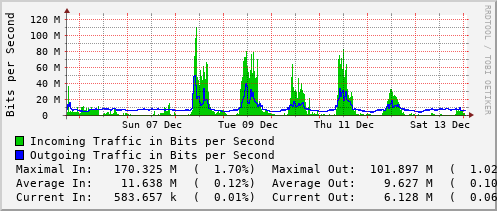 <h1>Traffic Analysis for Vl1400 -- ec5-rt-2903.ns.uwaterloo.ca</h1> <div id="sysdetails"> <table> <tr> <td>System:</td> <td>ec5-rt-2903.ns.uwaterloo.ca in EC51903</td> </tr> <tr> <td>Maintainer:</td> <td>noc@uwaterloo.ca </td> </tr> <tr> <td>Description:</td> <td>Vlan1400 po335.1400-dist-rt </td> </tr> <tr> <td>ifType:</td> <td>propVirtual (53)</td> </tr> <tr> <td>ifName:</td> <td>Vl1400</td> </tr> <tr> <td>Max Speed:</td> <td>10.0 Gbits/s</td> </tr> <tr> <td>Ip:</td> <td>172.16.34.127 (po10-1400-0-ec5-rt-2903.ns.uwaterloo.ca)</td> </tr> </table> </div>