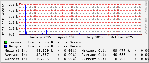 <h1>Traffic Analysis for Vl400 -- frl-rt-109.ns.uwaterloo.ca</h1> <div id="sysdetails"> <table> <tr> <td>System:</td> <td>frl-rt-109.ns.uwaterloo.ca in FRL 109</td> </tr> <tr> <td>Maintainer:</td> <td>noc@uwaterloo.ca</td> </tr> <tr> <td>Description:</td> <td>Vlan400 frl-voip </td> </tr> <tr> <td>ifType:</td> <td>propVirtual (53)</td> </tr> <tr> <td>ifName:</td> <td>Vl400</td> </tr> <tr> <td>Max Speed:</td> <td>10.0 Gbits/s</td> </tr> <tr> <td>Ip:</td> <td>172.30.193.33 (v411-frl-rt-109.ns.uwaterloo.ca)</td> </tr> </table> </div>