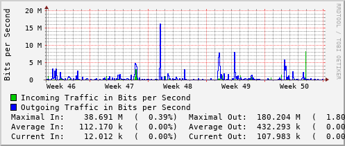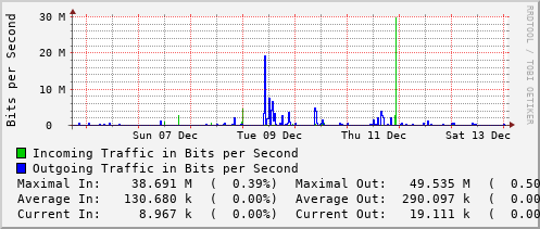 <h1>Traffic Analysis for Vl420 -- frl-rt-109.ns.uwaterloo.ca</h1> <div id="sysdetails"> <table> <tr> <td>System:</td> <td>frl-rt-109.ns.uwaterloo.ca in FRL 109</td> </tr> <tr> <td>Maintainer:</td> <td>noc@uwaterloo.ca</td> </tr> <tr> <td>Description:</td> <td>Vlan420 frl-user </td> </tr> <tr> <td>ifType:</td> <td>propVirtual (53)</td> </tr> <tr> <td>ifName:</td> <td>Vl420</td> </tr> <tr> <td>Max Speed:</td> <td>10.0 Gbits/s</td> </tr> <tr> <td>Ip:</td> <td>129.97.133.33 (v420-frl-rt-109.uwaterloo.ca)</td> </tr> </table> </div>