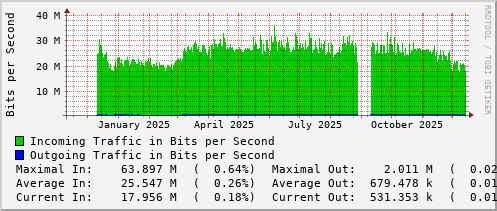 <h1>Traffic Analysis for Vl440 -- ia-rt-2909.ns.uwaterloo.ca</h1> <div id="sysdetails"> <table> <tr> <td>System:</td> <td>ia-rt-2909.ns.uwaterloo.ca in IA 2909</td> </tr> <tr> <td>Maintainer:</td> <td>noc@uwaterloo.ca </td> </tr> <tr> <td>Description:</td> <td>Vlan440 ia-sec </td> </tr> <tr> <td>ifType:</td> <td>propVirtual (53)</td> </tr> <tr> <td>ifName:</td> <td>Vl440</td> </tr> <tr> <td>Max Speed:</td> <td>10.0 Gbits/s</td> </tr> <tr> <td>Ip:</td> <td>172.25.125.129 (v440-ia-rt-2909.ns.uwaterloo.ca)</td> </tr> </table> </div>