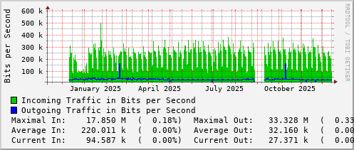 <h1>Traffic Analysis for Vl480 -- ia-rt-2909.ns.uwaterloo.ca</h1> <div id="sysdetails"> <table> <tr> <td>System:</td> <td>ia-rt-2909.ns.uwaterloo.ca in IA 2909</td> </tr> <tr> <td>Maintainer:</td> <td>noc@uwaterloo.ca </td> </tr> <tr> <td>Description:</td> <td>Vlan480 ia-mgmt </td> </tr> <tr> <td>ifType:</td> <td>propVirtual (53)</td> </tr> <tr> <td>ifName:</td> <td>Vl480</td> </tr> <tr> <td>Max Speed:</td> <td>10.0 Gbits/s</td> </tr> <tr> <td>Ip:</td> <td>172.25.57.113 (v480-ia-rt-2909.ns.uwaterloo.ca)</td> </tr> </table> </div>