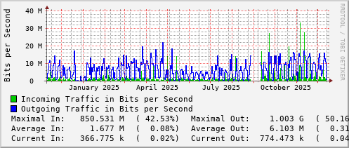 <h1>Traffic Analysis for Po26 -- pas-rt-1099a.ns.uwaterloo.ca</h1> <div id="sysdetails"> <table> <tr> <td>System:</td> <td>pas-rt-1099a.ns.uwaterloo.ca in PAS 1099A</td> </tr> <tr> <td>Maintainer:</td> <td>noc@uwaterloo.ca </td> </tr> <tr> <td>Description:</td> <td>Port-channel26 po26-pas-sw-2034-a </td> </tr> <tr> <td>ifType:</td> <td>propVirtual (53)</td> </tr> <tr> <td>ifName:</td> <td>Po26</td> </tr> <tr> <td>Max Speed:</td> <td>2000.0 Mbits/s</td> </tr> <tr> <td>Ip:</td> <td>No Ip (No DNS name)</td> </tr> </table> </div>