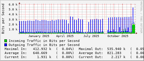 <h1>Traffic Analysis for Vl409 -- pas-rt-1099a.ns.uwaterloo.ca</h1> <div id="sysdetails"> <table> <tr> <td>System:</td> <td>pas-rt-1099a.ns.uwaterloo.ca in PAS 1099A</td> </tr> <tr> <td>Maintainer:</td> <td>noc@uwaterloo.ca </td> </tr> <tr> <td>Description:</td> <td>Vlan409 pas-voice </td> </tr> <tr> <td>ifType:</td> <td>propVirtual (53)</td> </tr> <tr> <td>ifName:</td> <td>Vl409</td> </tr> <tr> <td>Max Speed:</td> <td>1000.0 Mbits/s</td> </tr> <tr> <td>Ip:</td> <td>172.30.192.193 (v409-pas-rt-1099a.ns.uwaterloo.ca)</td> </tr> </table> </div>