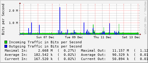 <h1>Traffic Analysis for Vl428 -- pas-rt-1099a.ns.uwaterloo.ca</h1> <div id="sysdetails"> <table> <tr> <td>System:</td> <td>pas-rt-1099a.ns.uwaterloo.ca in PAS 1099A</td> </tr> <tr> <td>Maintainer:</td> <td>noc@uwaterloo.ca </td> </tr> <tr> <td>Description:</td> <td>Vlan428 pas-user-aco </td> </tr> <tr> <td>ifType:</td> <td>propVirtual (53)</td> </tr> <tr> <td>ifName:</td> <td>Vl428</td> </tr> <tr> <td>Max Speed:</td> <td>1000.0 Mbits/s</td> </tr> <tr> <td>Ip:</td> <td>172.20.3.1 (v428-pas-rt-1099a.ns.uwaterloo.ca)</td> </tr> </table> </div>