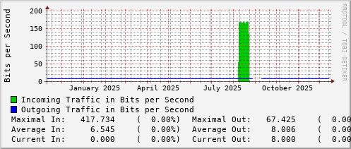 <h1>Traffic Analysis for Vl459 -- pas-rt-1099a.ns.uwaterloo.ca</h1> <div id="sysdetails"> <table> <tr> <td>System:</td> <td>pas-rt-1099a.ns.uwaterloo.ca in PAS 1099A</td> </tr> <tr> <td>Maintainer:</td> <td>noc@uwaterloo.ca </td> </tr> <tr> <td>Description:</td> <td>Vlan459 pas-sec </td> </tr> <tr> <td>ifType:</td> <td>propVirtual (53)</td> </tr> <tr> <td>ifName:</td> <td>Vl459</td> </tr> <tr> <td>Max Speed:</td> <td>1000.0 Mbits/s</td> </tr> <tr> <td>Ip:</td> <td>172.16.25.145 (v459-pas-rt-1099a.ns.uwaterloo.ca)</td> </tr> </table> </div>