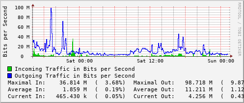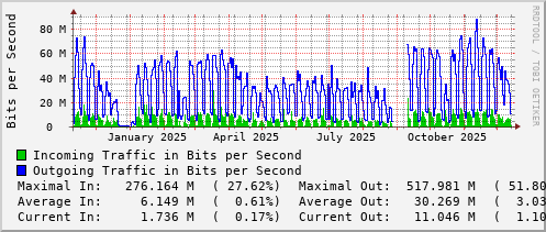 <h1>Traffic Analysis for Vl461 -- pas-rt-1099a.ns.uwaterloo.ca</h1> <div id="sysdetails"> <table> <tr> <td>System:</td> <td>pas-rt-1099a.ns.uwaterloo.ca in PAS 1099A</td> </tr> <tr> <td>Maintainer:</td> <td>noc@uwaterloo.ca </td> </tr> <tr> <td>Description:</td> <td>Vlan461 pas-wifi </td> </tr> <tr> <td>ifType:</td> <td>propVirtual (53)</td> </tr> <tr> <td>ifName:</td> <td>Vl461</td> </tr> <tr> <td>Max Speed:</td> <td>1000.0 Mbits/s</td> </tr> <tr> <td>Ip:</td> <td>172.22.5.1 (v461-pas-rt-1099a.ns.uwaterloo.ca)</td> </tr> </table> </div>