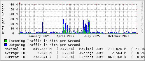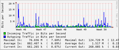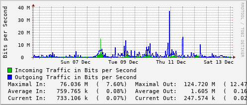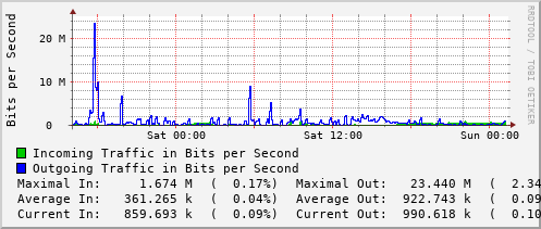 <h1>Traffic Analysis for Vl9 -- rac-rt-1104.ns.uwaterloo.ca</h1> <div id="sysdetails"> <table> <tr> <td>System:</td> <td>rac-rt-1104.ns.uwaterloo.ca in RAC 1104</td> </tr> <tr> <td>Maintainer:</td> <td>noc@uwaterloo.ca</td> </tr> <tr> <td>Description:</td> <td>Vlan9 rac-net </td> </tr> <tr> <td>ifType:</td> <td>propVirtual (53)</td> </tr> <tr> <td>ifName:</td> <td>Vl9</td> </tr> <tr> <td>Max Speed:</td> <td>1000.0 Mbits/s</td> </tr> <tr> <td>Ip:</td> <td>129.97.9.1 (v9-rac-rt-1104.uwaterloo.ca)</td> </tr> </table> </div>
